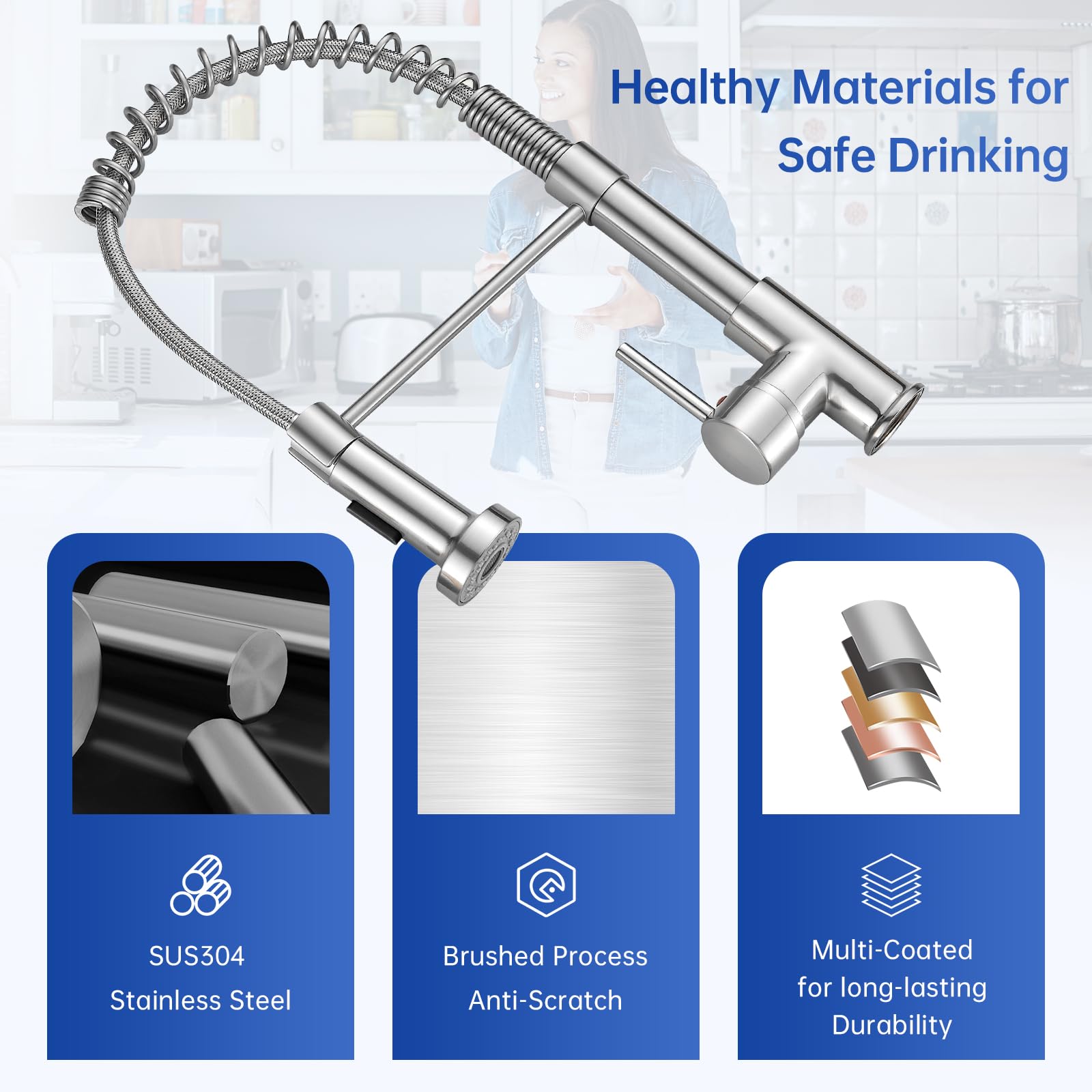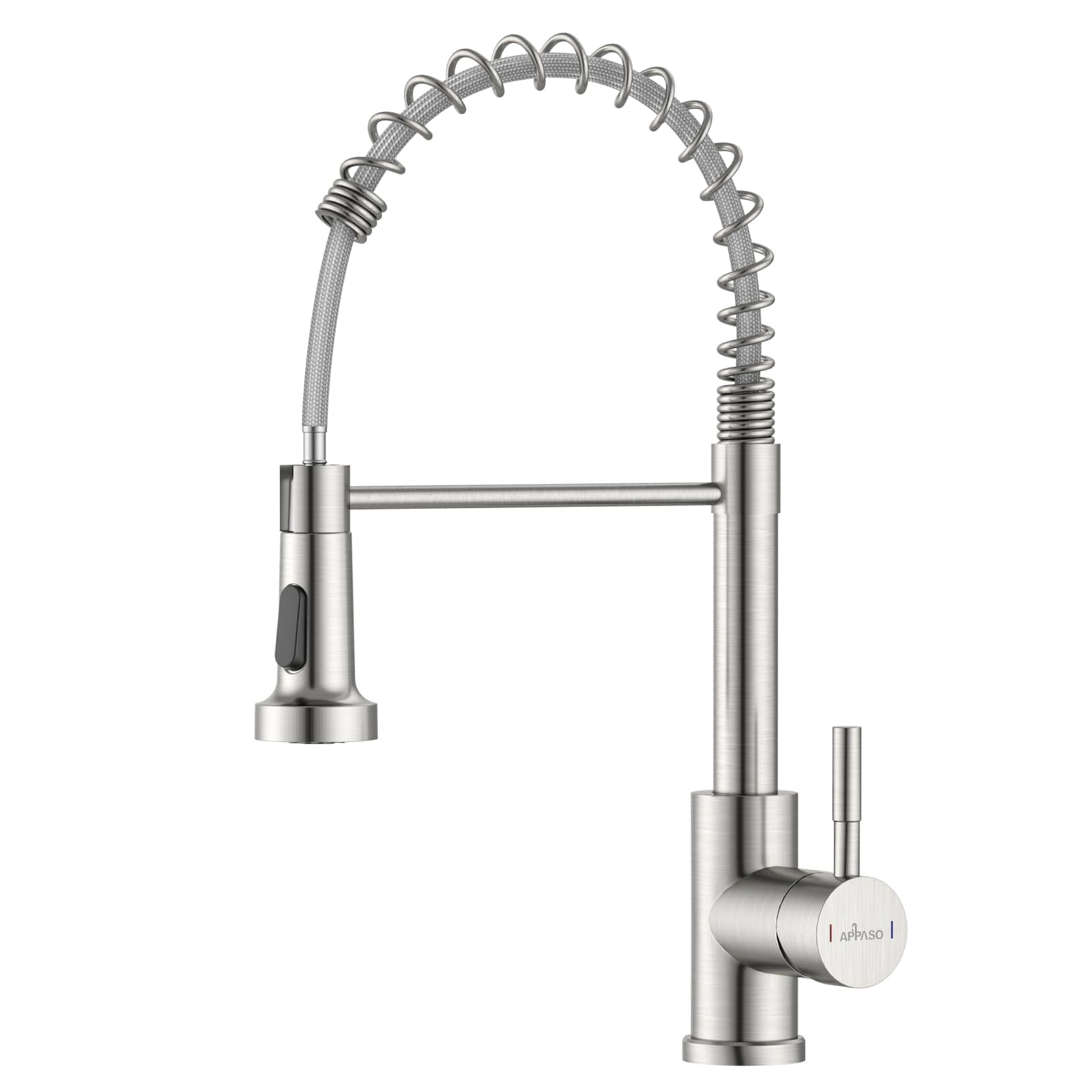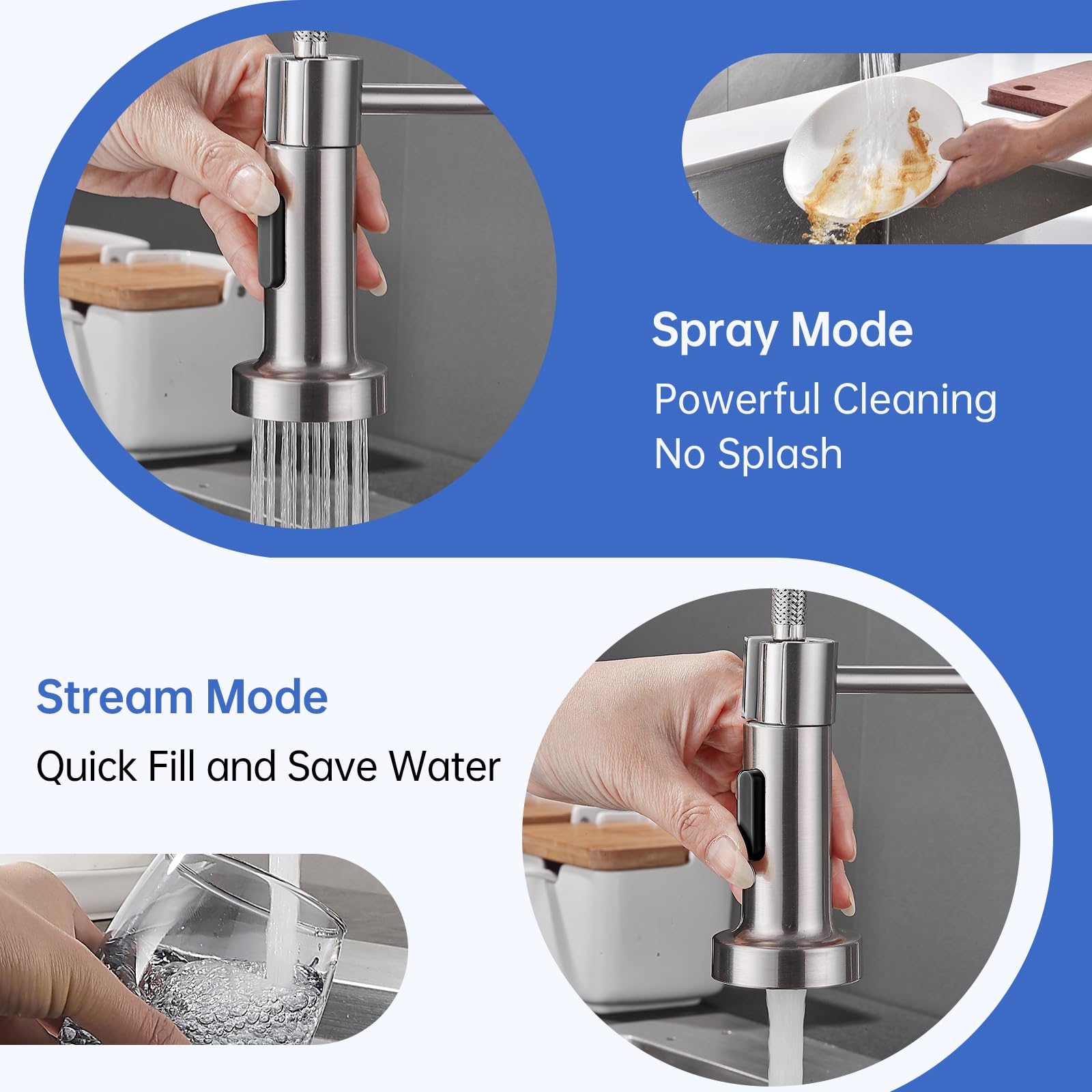 APPASO Wasserhahn, Küchenarmatur Hochdruck mit Herunterziehen Brause, Mischbatterie Küche mit 2 Strahlarten, 360° Drehbar Spültischarmatur -Bleifrei/Nickelfrei Edelstahl | Gebürstet