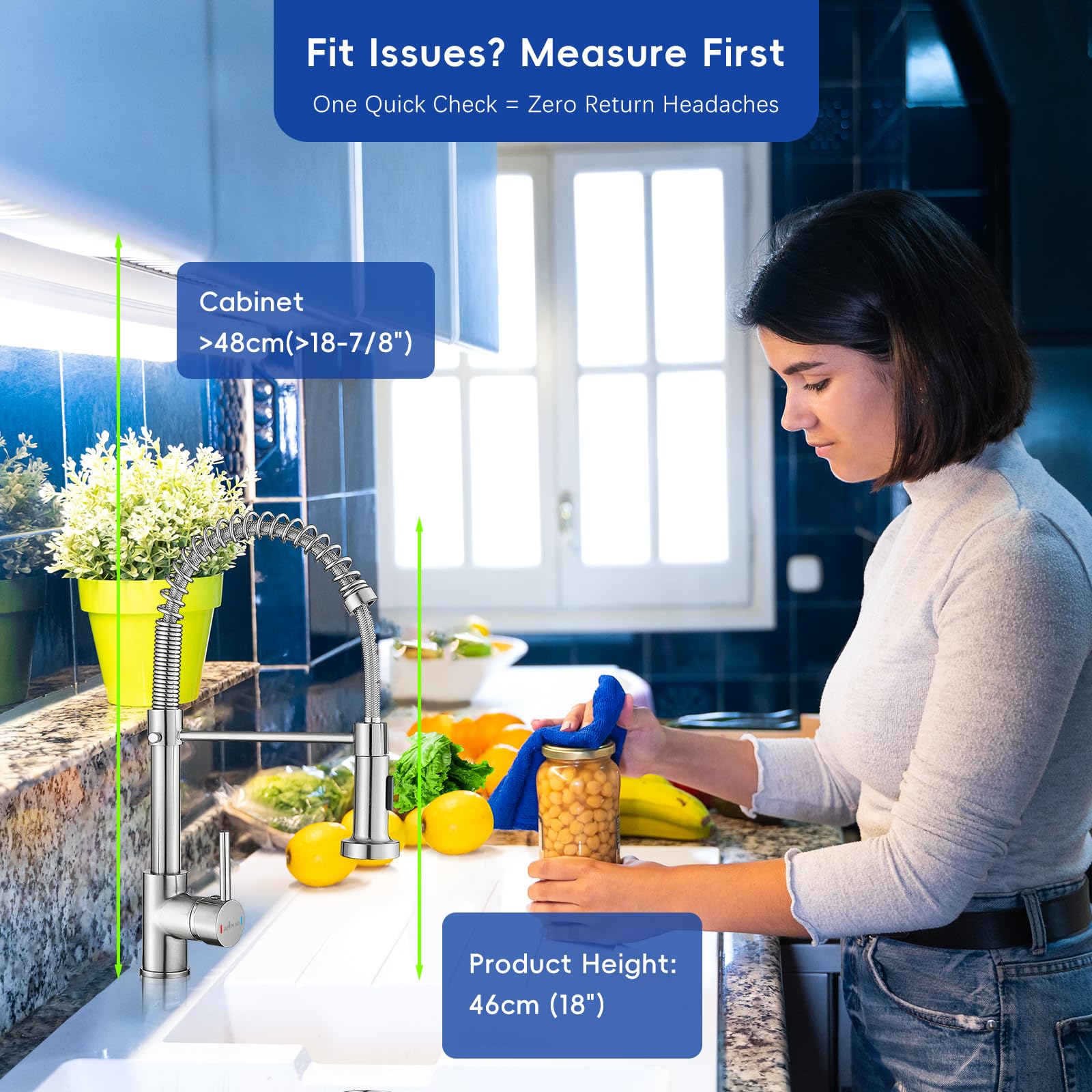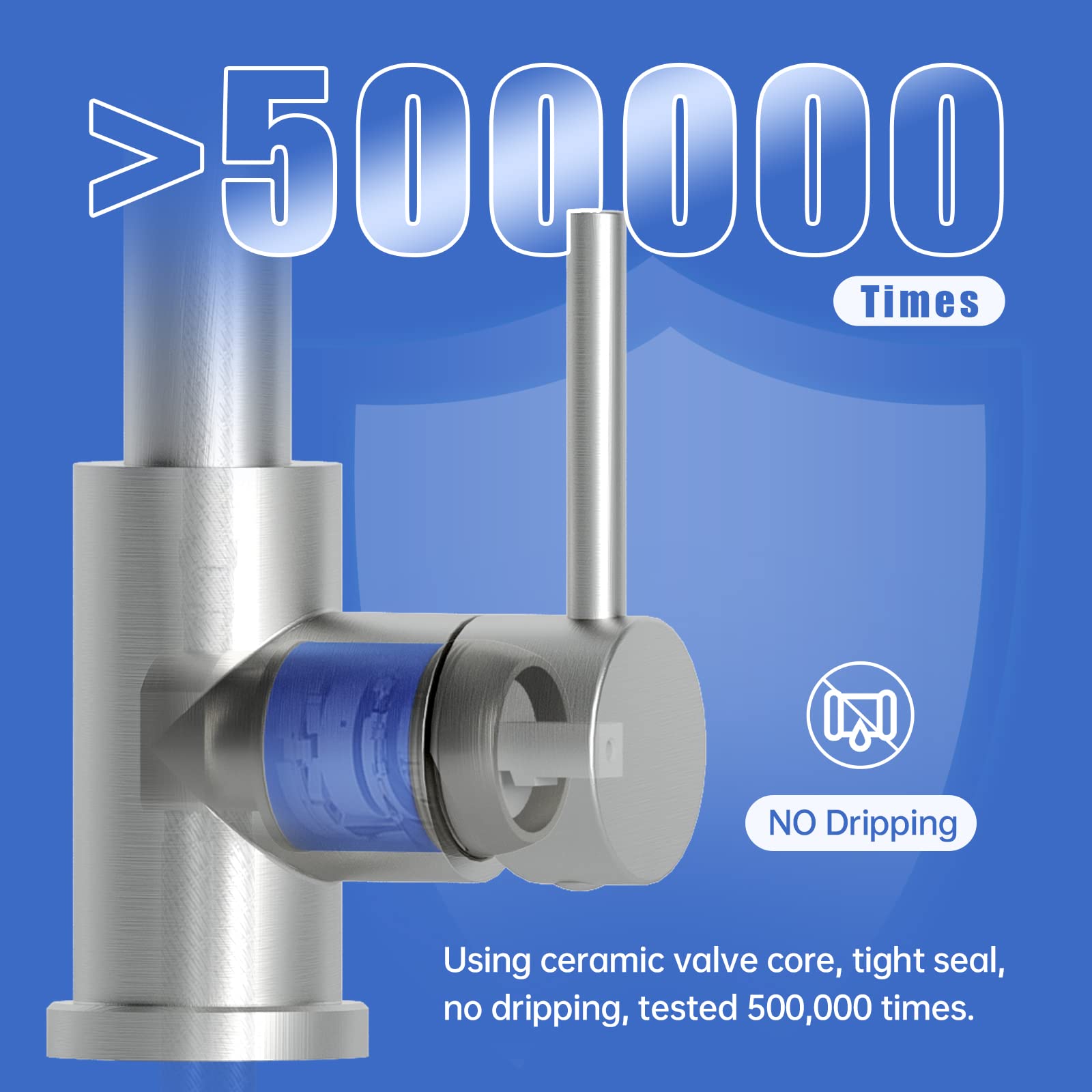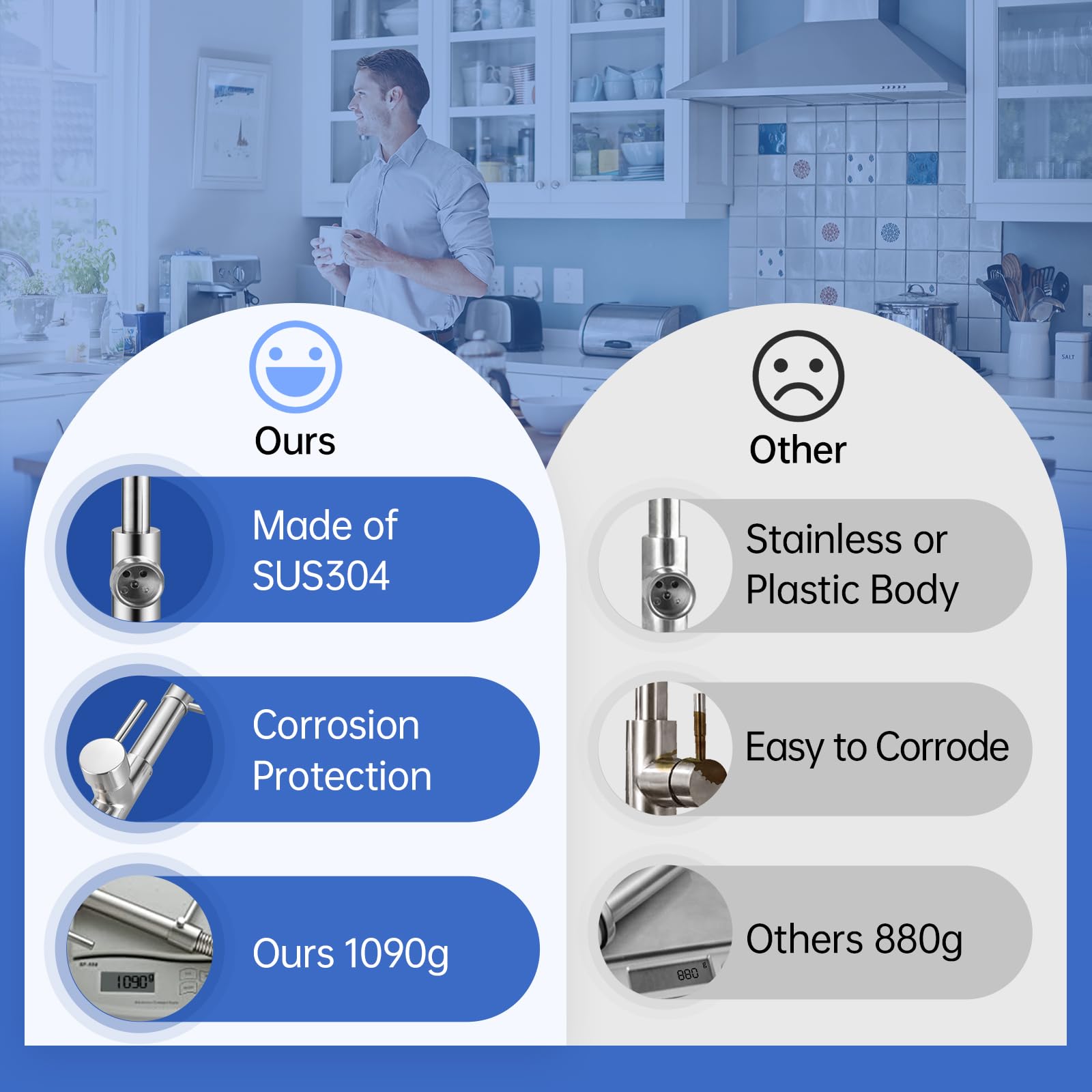 APPASO Wasserhahn, Küchenarmatur Hochdruck mit Herunterziehen Brause, Mischbatterie Küche mit 2 Strahlarten, 360° Drehbar Spültischarmatur -Bleifrei/Nickelfrei Edelstahl | Gebürstet