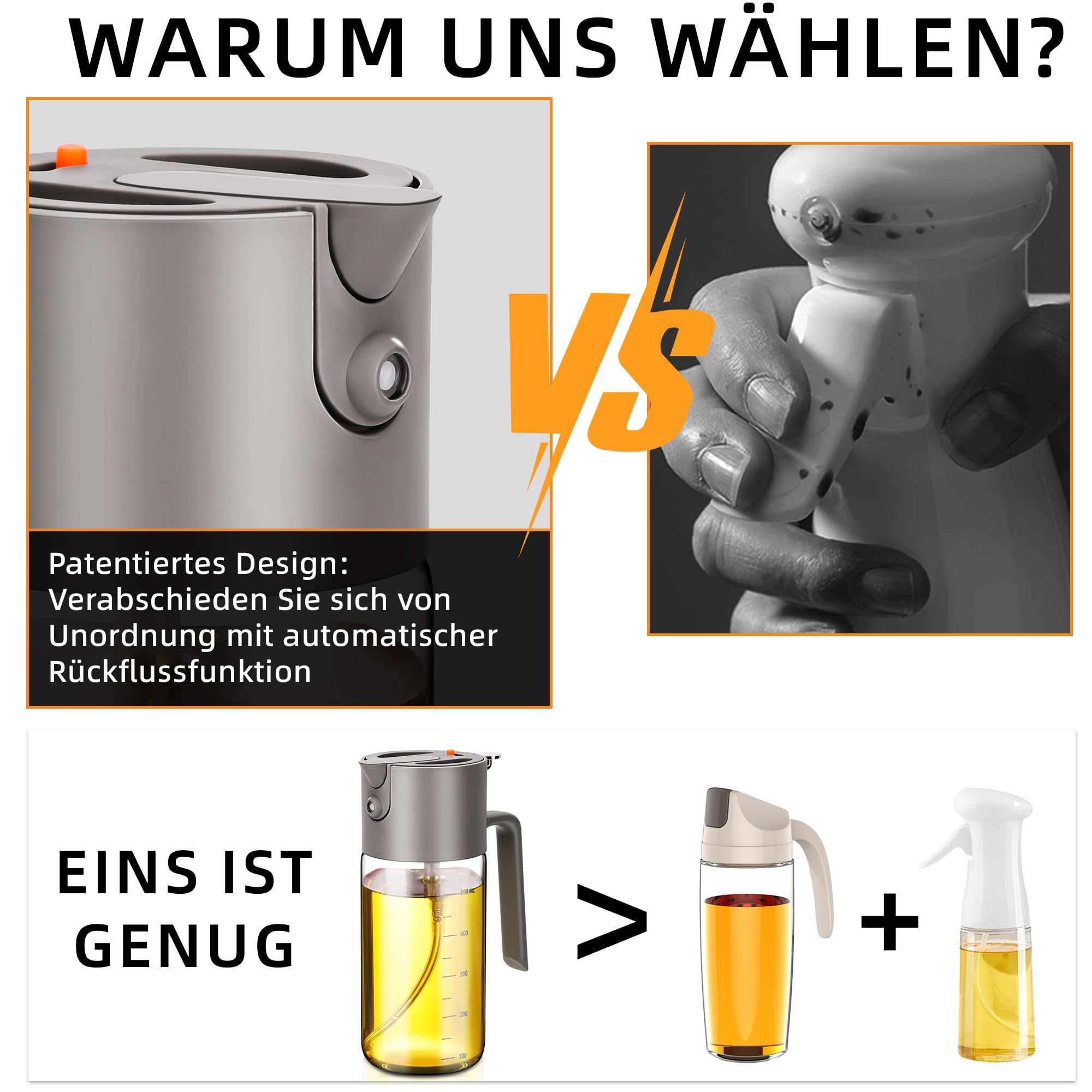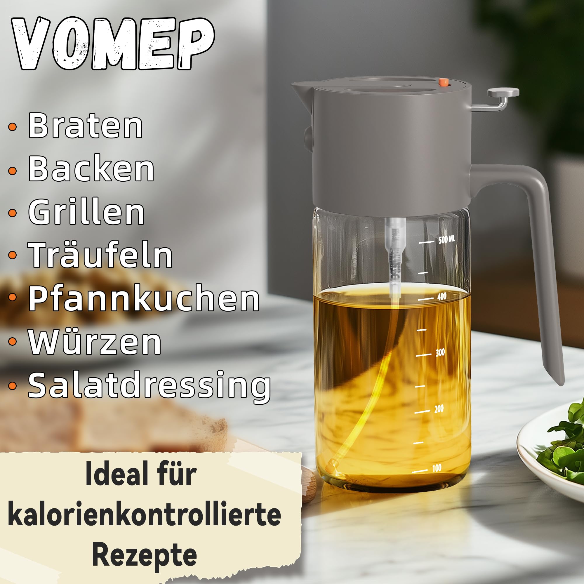 VOMEP Olive Oil Dispenser, 2 in 1 Oil Sprayer for Cooking, 16oz/470ml Glass Oil Spray Bottle with Pourer, Food-grade Oil Dispenser and Oil Sprayer for Kitchen, Salad, Frying, BBQ(Silbergrau)