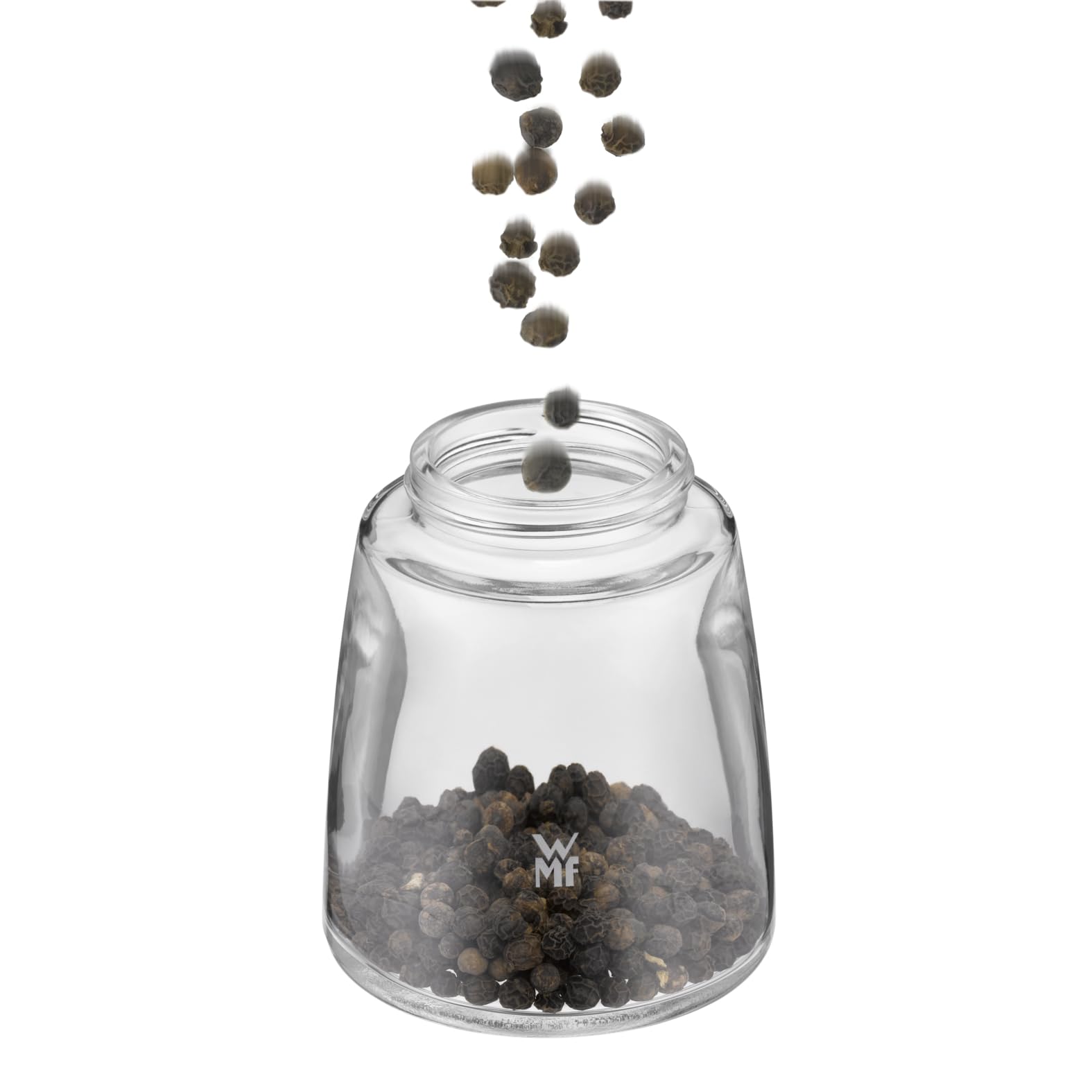 WMF Trend Mühlenset 2tlg, Salz- und Pfeffermühle unbefüllt, Glasbehälter, Keramikmahlwerk, Mühle für Salz und Pfeffer, Gewürze, spülmaschinengeeignet, grau